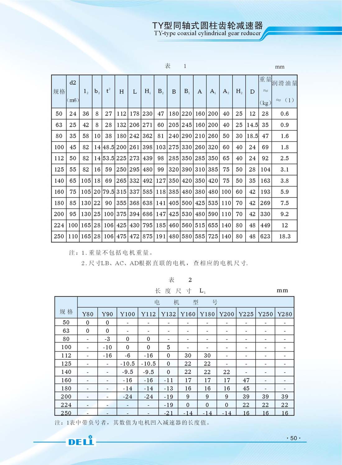 TY系列同軸式硬齒面齒輪減速器是理想的動力傳送裝置,它廣泛用于冶金、礦山、化工、紡織、儀器、能源、建材等行業。減速器的齒輪圓周速度不大于20m/s,允許正、反轉。使用于水平臥式安裝,前 后傾斜角不大于20。直聯電機為Y系列三相異步四級電動機,電機的安裝型式為B5或B35;工作環境溫度為0攝適度-40攝適度。 減速器的型號TY50/TY63/TY80/TY100/TY112/TY125/TY140/TY160/ TY180/TY200/TY224/TY250